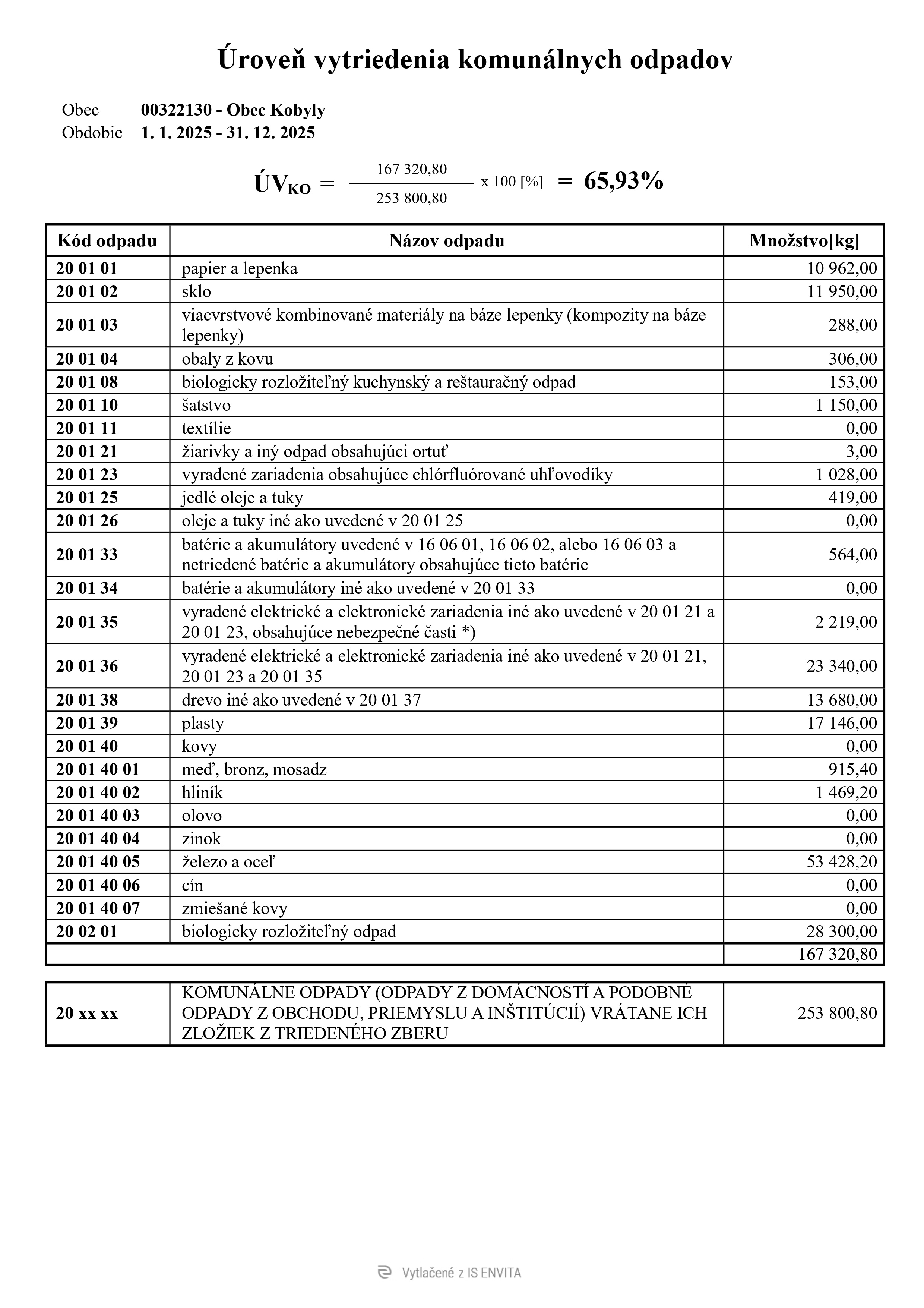 Úroveň vytriedenia odpadov v našej obci za rok 2025